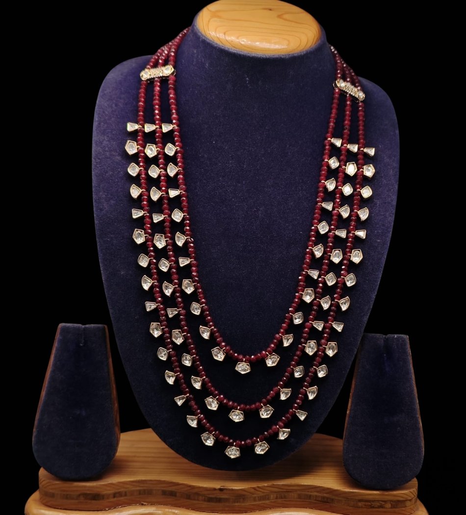 Groom’s Maroon Kundan Layered Necklace – Royal Wedding Mala