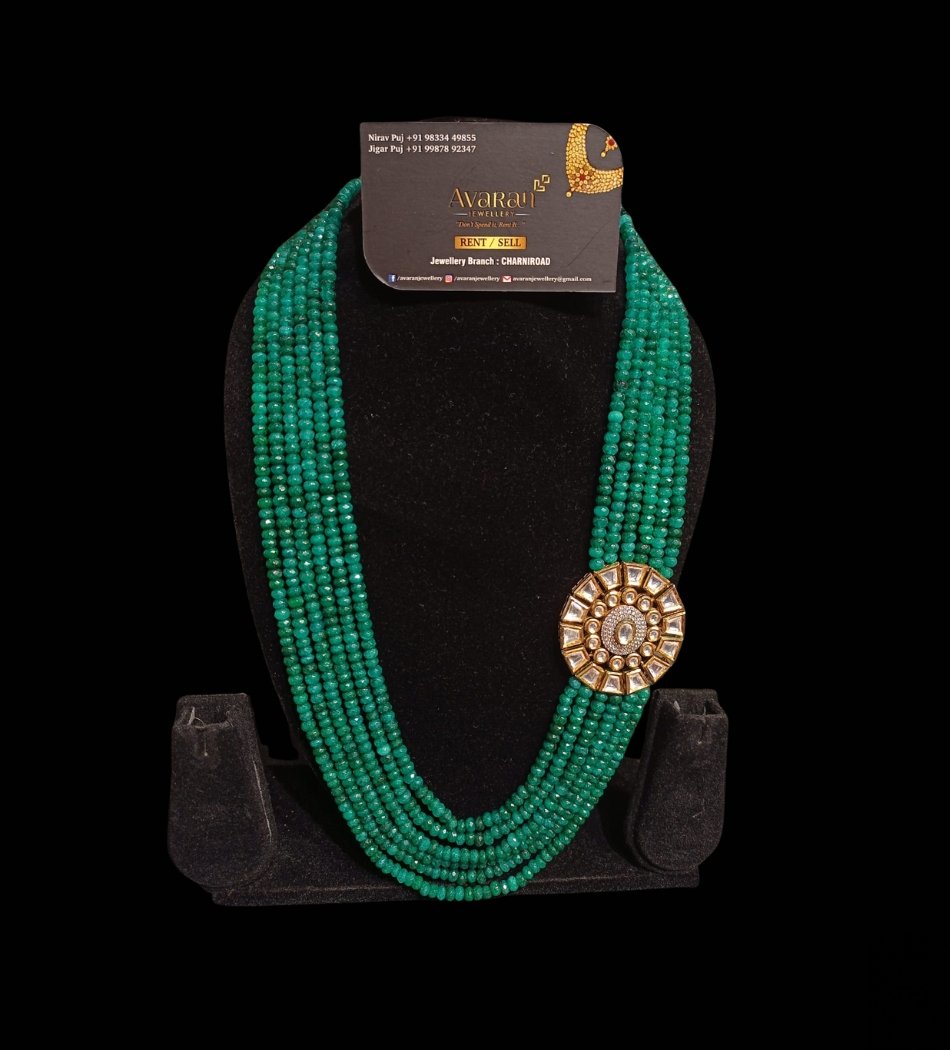 Royal Emerald Green 7-Layer Groom Mala with Polki Brooch